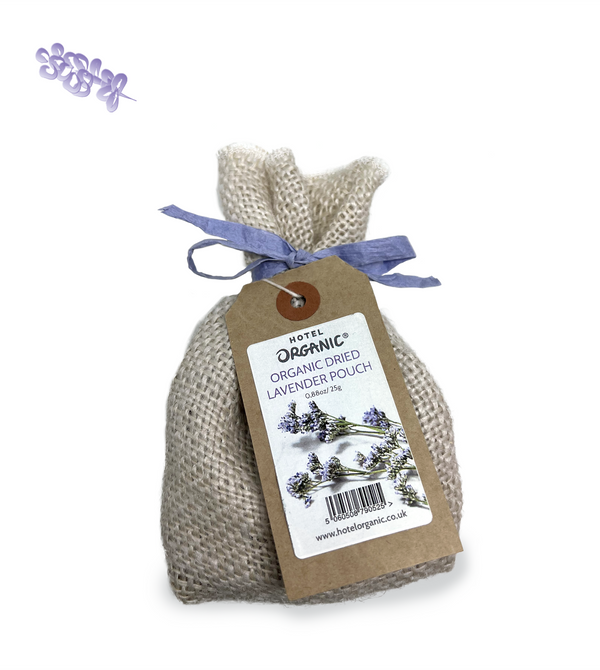 Our Dried Lavender pouches are beautifully presented in a grey hessian bag with a cotton liner and filled with 25g of pure organic dried Lavender. The paper based ribbon used to tie the pouch is Paper Raffia Ribbon which is biodegradable and recyclable.
